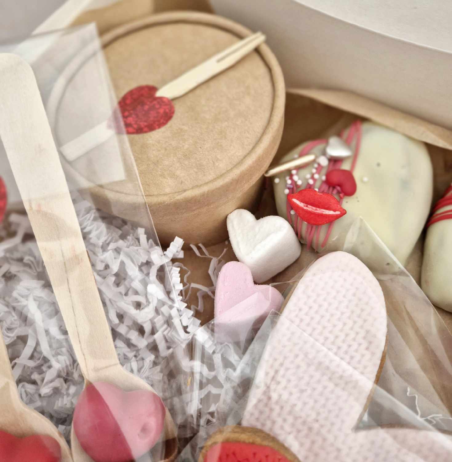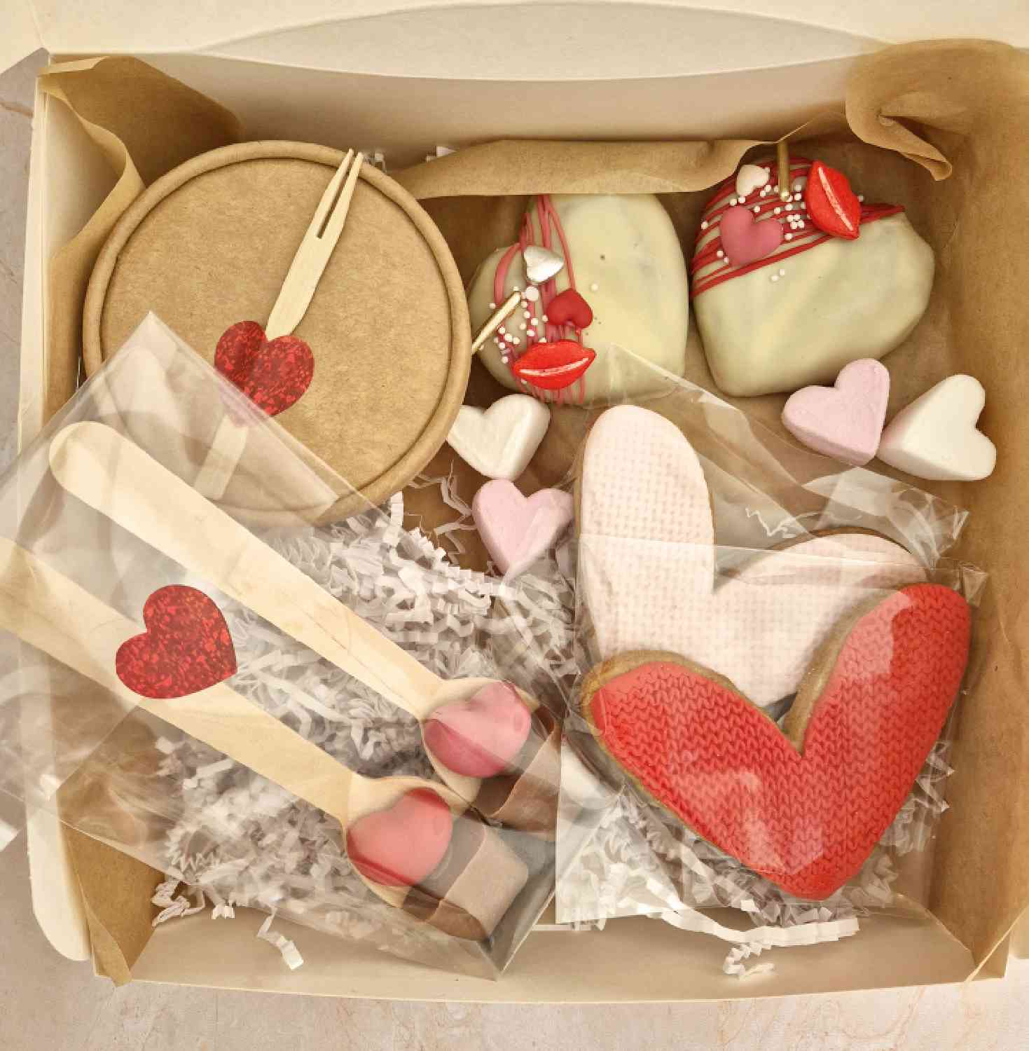 Notre box gourmande Saint Valentin, à partager avec votre moitié (ou pas ^^), est composée de :
